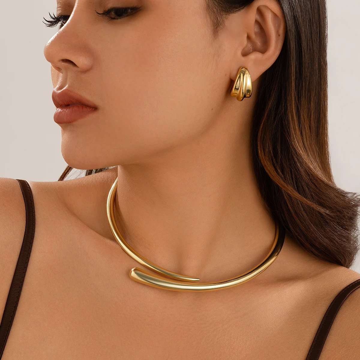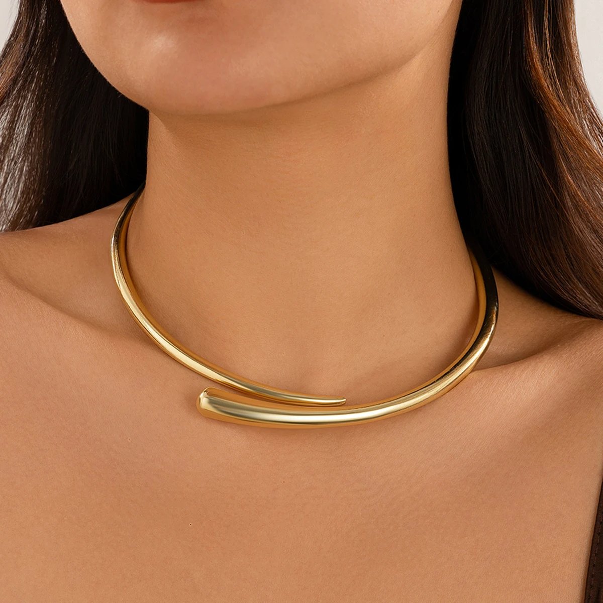 KunJoe-عقد عانق مفتوح للنساء ، قلادة معدنية أنيقة بلون ذهبي ، سلسلة ياقة فاخرة
