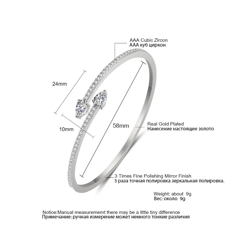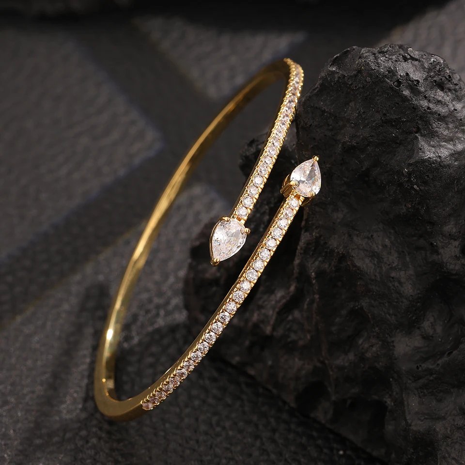 ZAKOL كلاسيكي اثنين قطرة الماء الزركون سوار مفتوح للنساء أنيقة فضية اللون كامل كريستال الزركون مجوهرات حفلات الزفاف