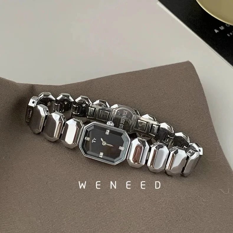 ساعة كوارتز للنساء مزاجية وأنيقة بتصميم مربع مع سلسلة أنثوية تجمع بين وظيفة الساعة ومجوهرات الإكسسوارات لتناسب جميع الأوقات والمناسبات.