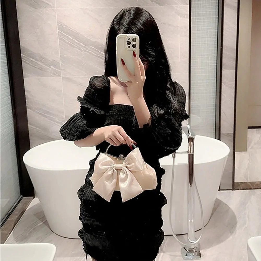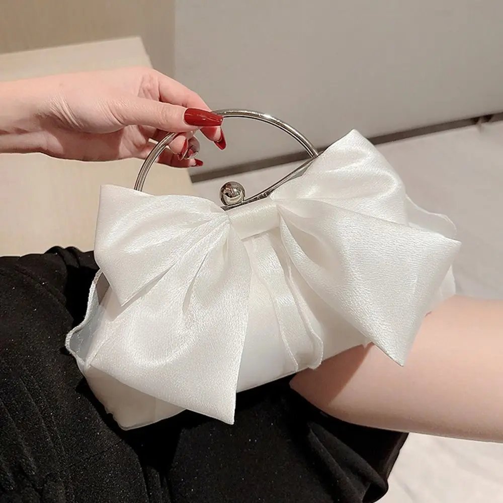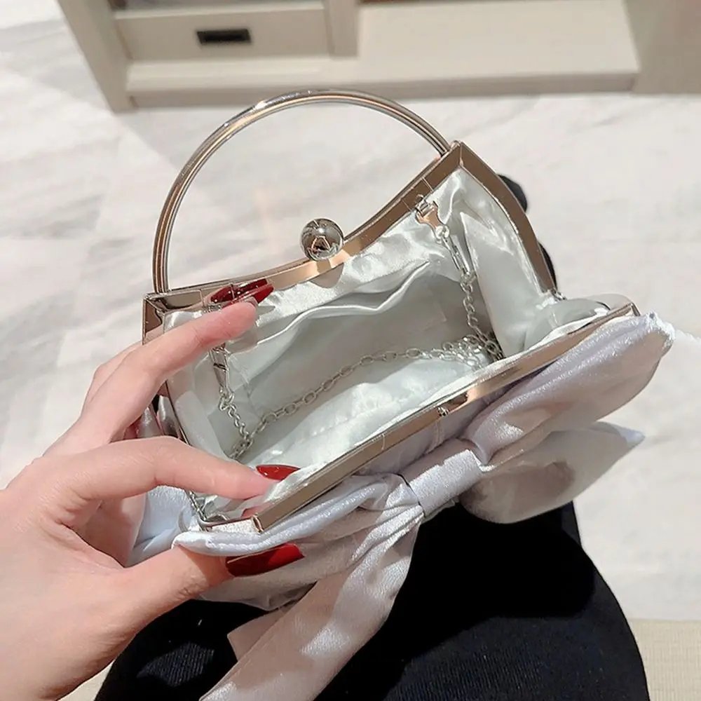 حقيبة سهرة بفيونكة من الحرير الذهبي اللامع للنساء ، مخلب مأدبة أنيقة أنيقة ، حقائب كتف بسلسلة ، محفظة فاخرة ، حقائب يد نسائية للحفلات