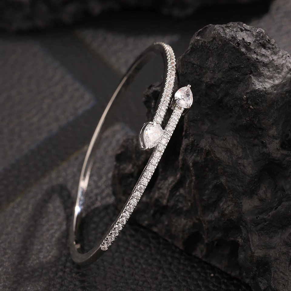 ZAKOL كلاسيكي اثنين قطرة الماء الزركون سوار مفتوح للنساء أنيقة فضية اللون كامل كريستال الزركون مجوهرات حفلات الزفاف